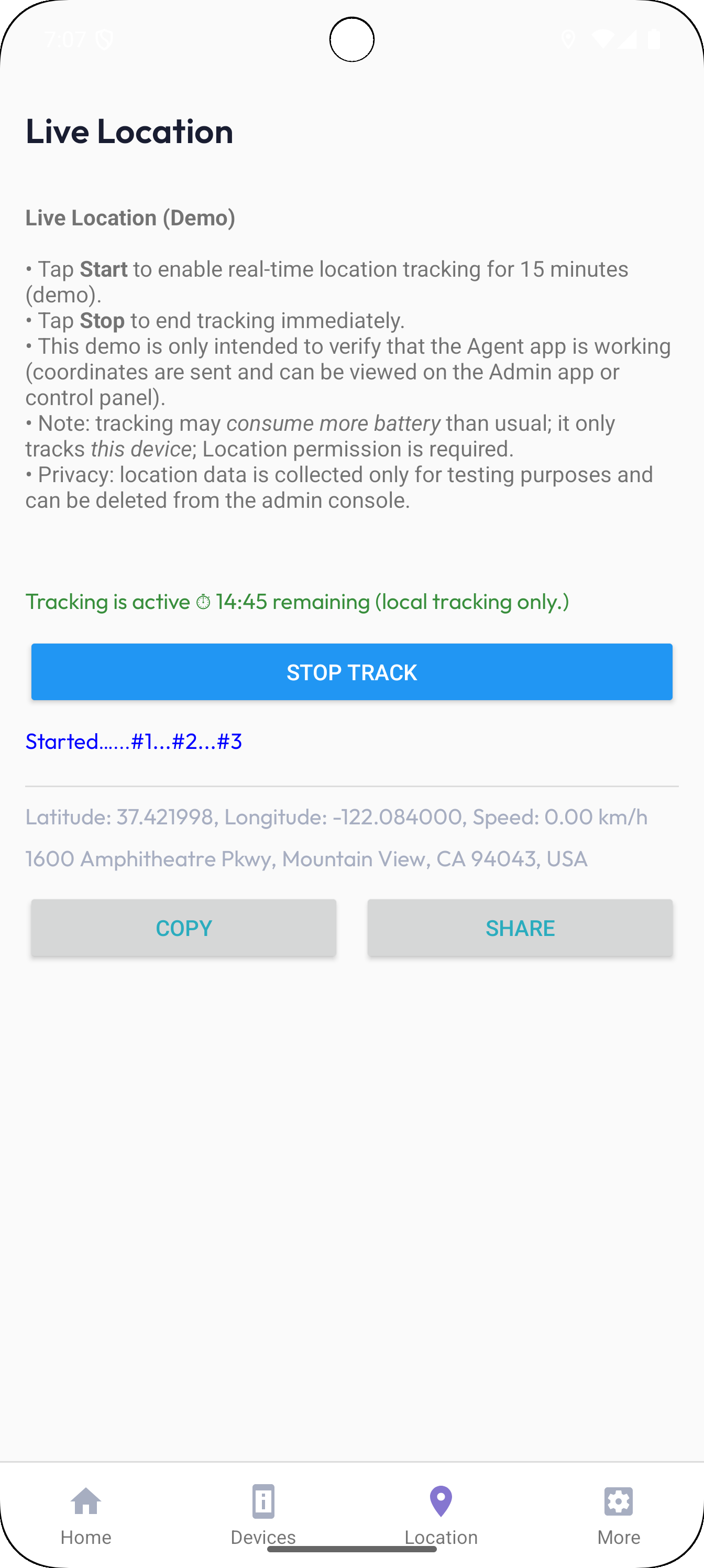 * This is intentional to **save battery**, as the Agent App’s role is limited to collecting and sending GPS data.