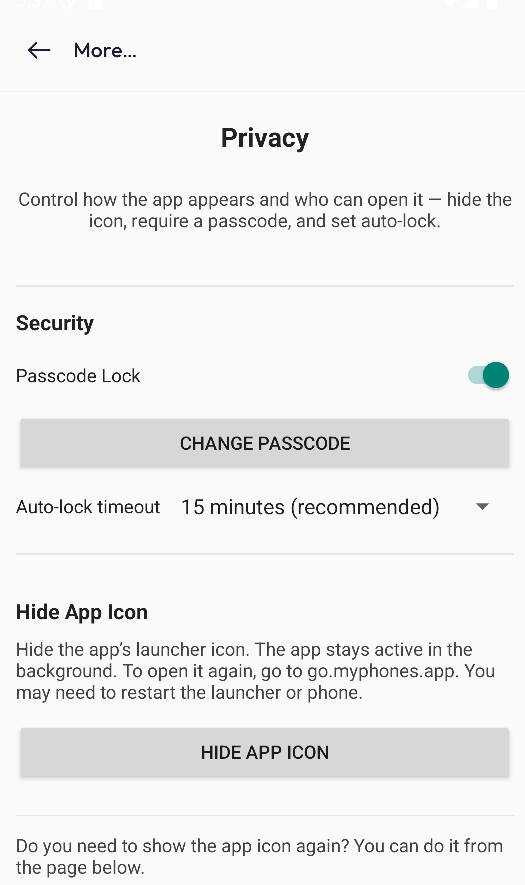 The **Hide Icon** feature allows you to remove the app’s shortcut from your phone’s app list and home screen. This helps you keep the app private, so it won’t be easily noticed by other people who may use your device.