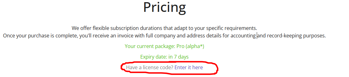 4. You will be redirected to the Package page and click on the link **Apply license key**.