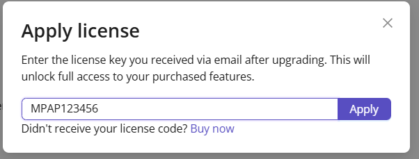 If the license is invalid or expired, you will receive an error message. Please double-check the code or contact your admin.