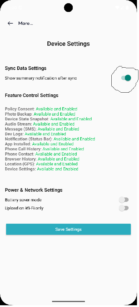 By default, the Agent App shows a **summary notification** on the Android status bar each time data is sent (synced) from the device to the server.