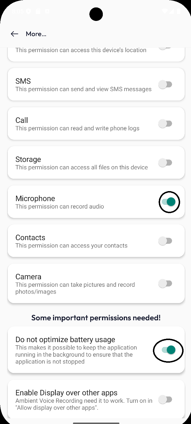 1. Turn off **Battery optimization**: